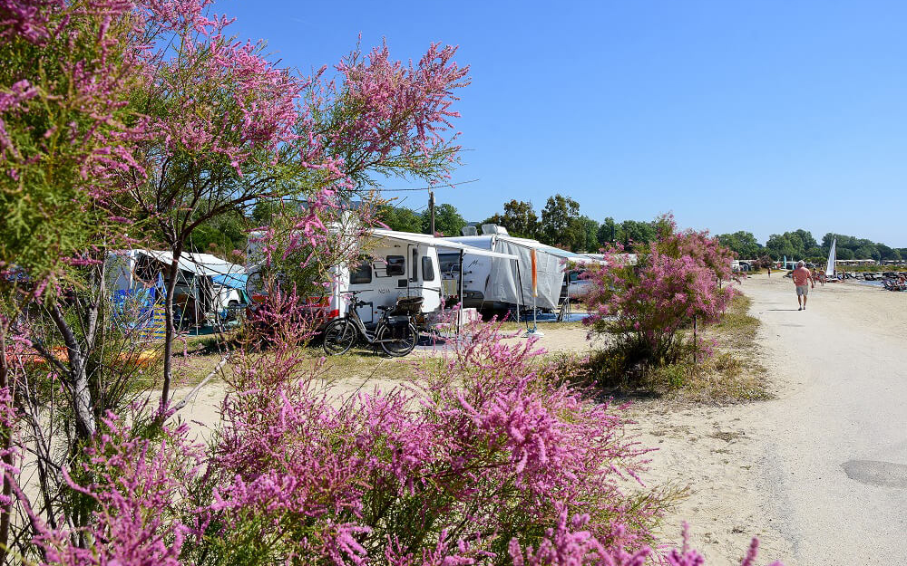 Nous bénéficions d'une ouverture directe sur la mer, avec des emplacements plein bord de mer et pour ceux qui préfèrent le charme et l'ombre de la partie boisée, un large souterrain leur permet de gagner la plage en toute sécurité.